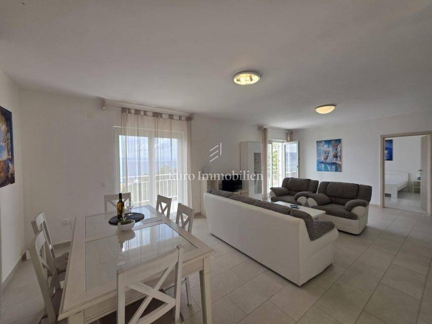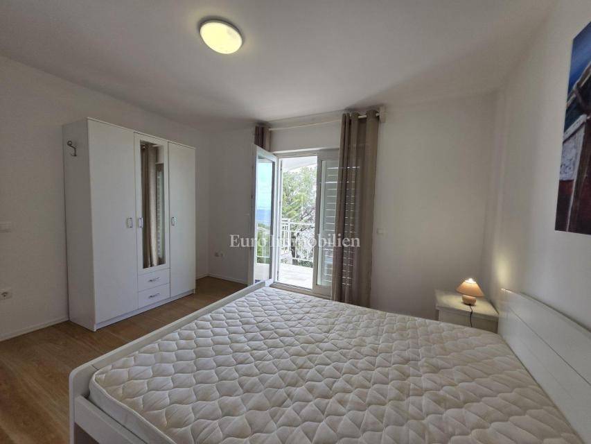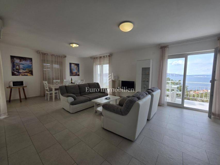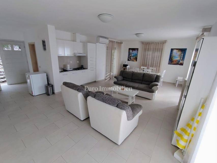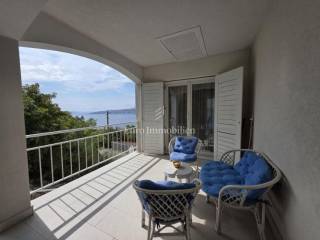 In a peaceful setting, with a beautiful sea view, lies this fully furnished and air-conditioned house, ready to move in or enjoy as a holiday home. In the basement there is a comfortable studio apartment, while the ground floor features two bedrooms, an entrance hall, a bathroom, and a spacious open-plan living room with dining area and kitchen, leading to a terrace. The upper floor has an identical layout, with access to a balcony and a covered east-facing terrace, ideal for relaxing at any time of the day. Within the large garden there is parking for several vehicles, making this property a winning combination for a perfect holiday or a quiet family life.