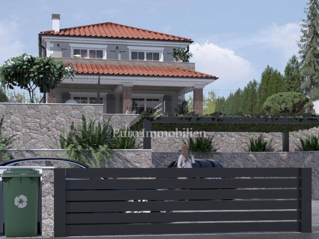For sale: a building plot located just 5 km from the town of Krk. The plot comes with a valid building permit for the construction of a detached house with a swimming pool, with a footprint of 132 m² and a total gross area of 198 m².