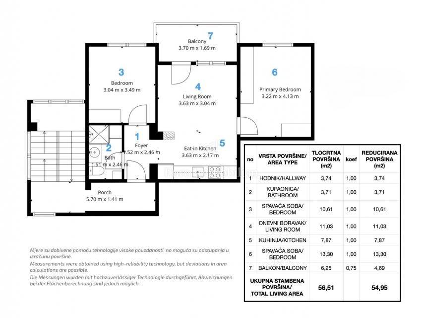 For sale is a two-bedroom apartment of 57 m², located in a quiet part of Ližnjan, close to Medulin. The apartment is on the first floor of a smaller residential building, fully furnished and ready to move in.