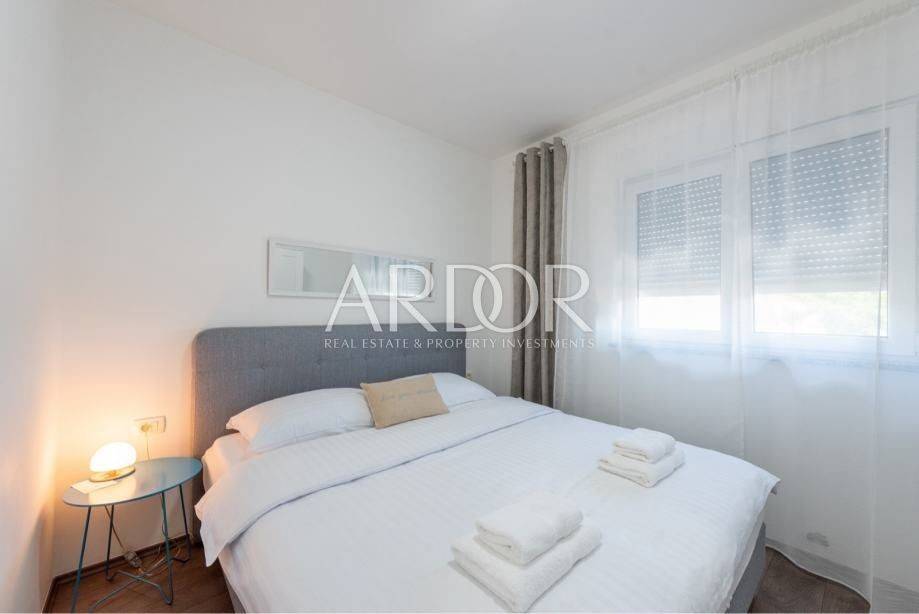 In addition to top-notch comfort, the apartment also offers three bathrooms, electric shutters, air conditioning, and its own fenced-in yard equipped with a stone barbecue, perfect for socializing and enjoying the outdoors. Of particular value are two private parking spaces, which is a rarity in this part of Matulji.