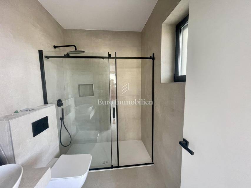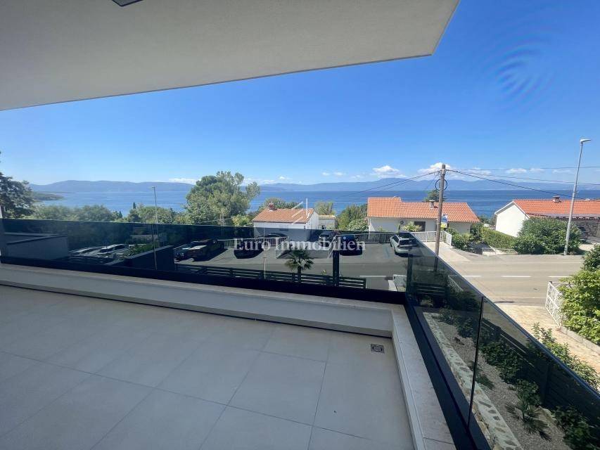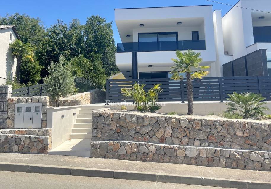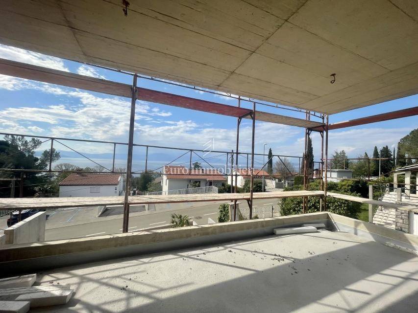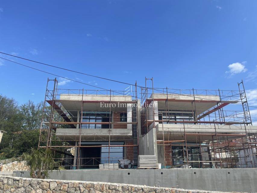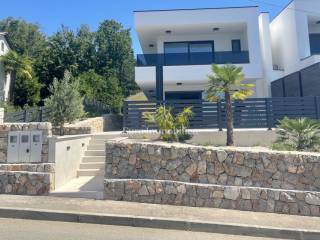 Semi-detached house near the sea in an attractive location covers 268 m2 and consists of a living room, kitchen, dining room, storage room, toilet on the ground floor and four bedrooms, three bathrooms on the first floor. The spacious terraces offer views of the sea and the city of Rijeka. The house is being built and equipped with high quality materials and equipment. Underfloor heating will be combined with air conditioners for space heating and cooling. The garden will have a swimming pool, sun deck, outdoor shower and barbecue area. It is only 200 m to one of the most beautiful beaches on the island of Krk (Njivice), and 400 m to the town center. The deadline for completion is December 2022.