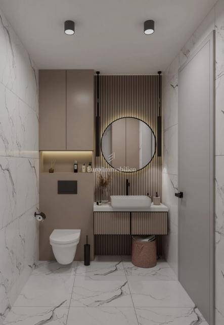 Quality materials and equipment are used in the construction, such as bathroom and toilet equipment made of ceramics and acrylic sanitary ware (console ceramic toilet bowl with built-in cistern, 70 cm wide sink, "walk in" shower with glass partition, electric water heater with a capacity of 50 liters etc.). Fittings for a sink and a dishwasher will be installed in the kitchen. As part of the electrical installation, switches, sockets, TV, satellite and telephone sockets will be installed. One of the options for heating and cooling apartments will be through air conditioning. It is also possible to install underfloor heating for an additional fee. Each apartment has one parking space, either outside or inside (in the garage).