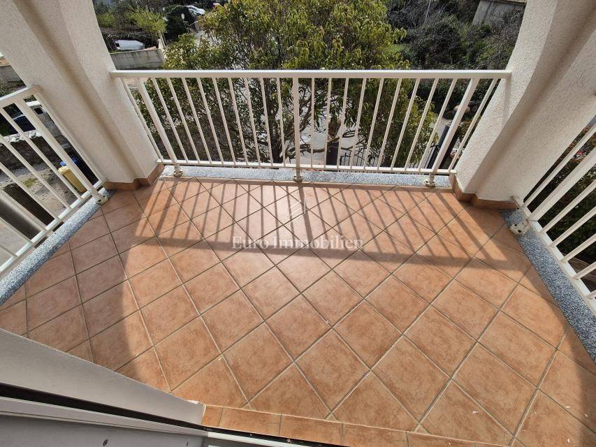 It is located on the first floor of the house, has a floor plan area of 105 m2 and consists of a hallway, kitchen with living room, bathroom, two bedrooms and three terraces with partial sea view. The apartment also has a gallery that can be arranged according to the needs of the new owner. The apartment has a storage room.