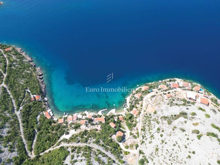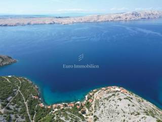 For sale is a building plot located below the main road, with the possibility of constructing two houses. It is situated in a small hamlet beneath Velebit, just 500 meters from the beach. The plot already offers a beautiful sea view.