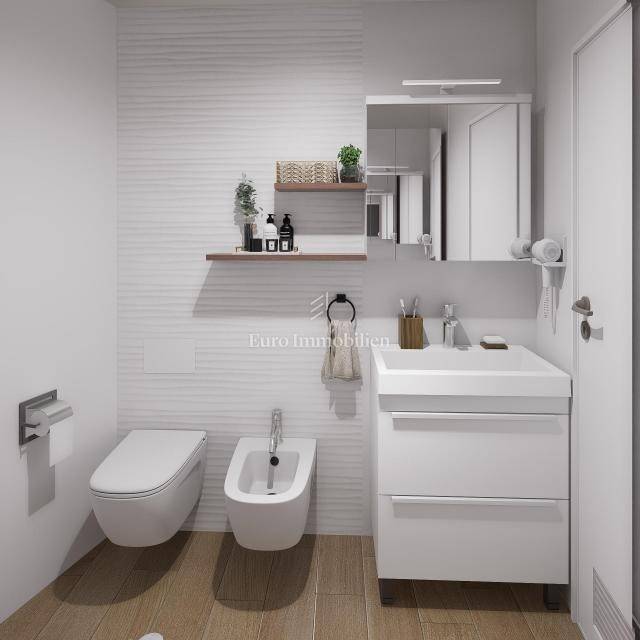 A highlight of the property is the large terrace with a glass railing and sea view. The apartment is sold unfurnished but is immediately ready for occupancy.