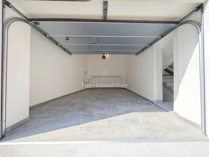 The apartment is on the first and top floor and is connected to its own garage on the ground floor (17 m²) via a private staircase. The total area, including the garage and staircase, is 120.76 m².