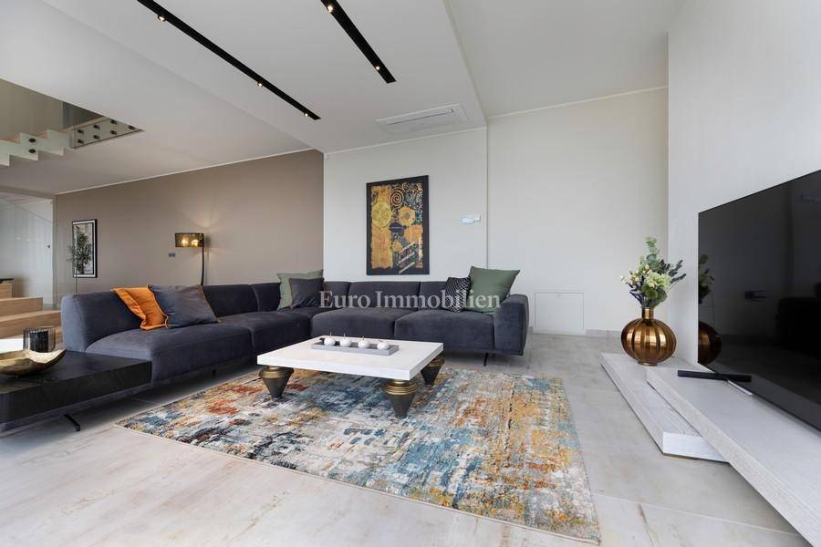 This modern luxury villa on the island of Krk sits on a plot of almost 1,000 m² in a peaceful and prestigious location, offering panoramic sea views, full privacy and exceptional comfort. It features 238 m² of interior space across two levels, spacious terraces, and a heated infinity pool.