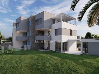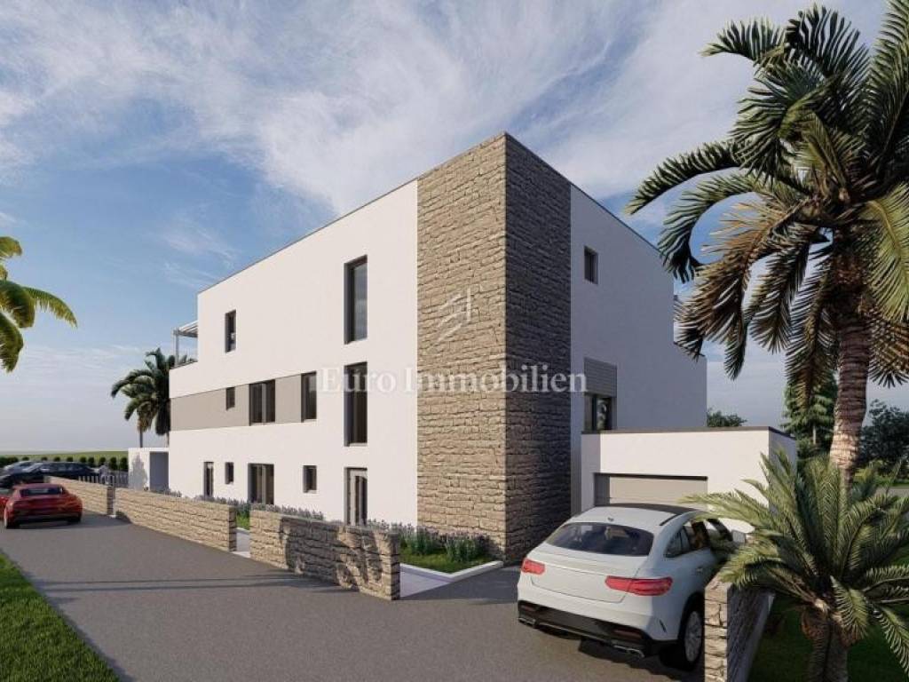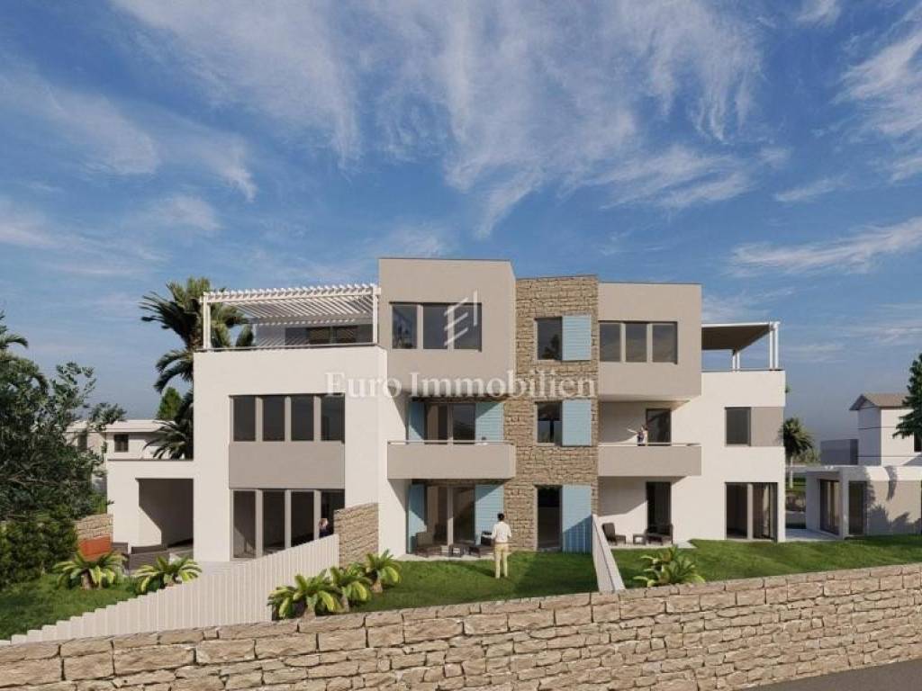 Situated above the main road, the building offers a sea view already from the ground floor. Each apartment includes its own parking space, with the option to purchase a garage. Ground-floor apartments come with a private garden area in front of the unit, while the upper-floor apartments feature balconies and spacious terraces.