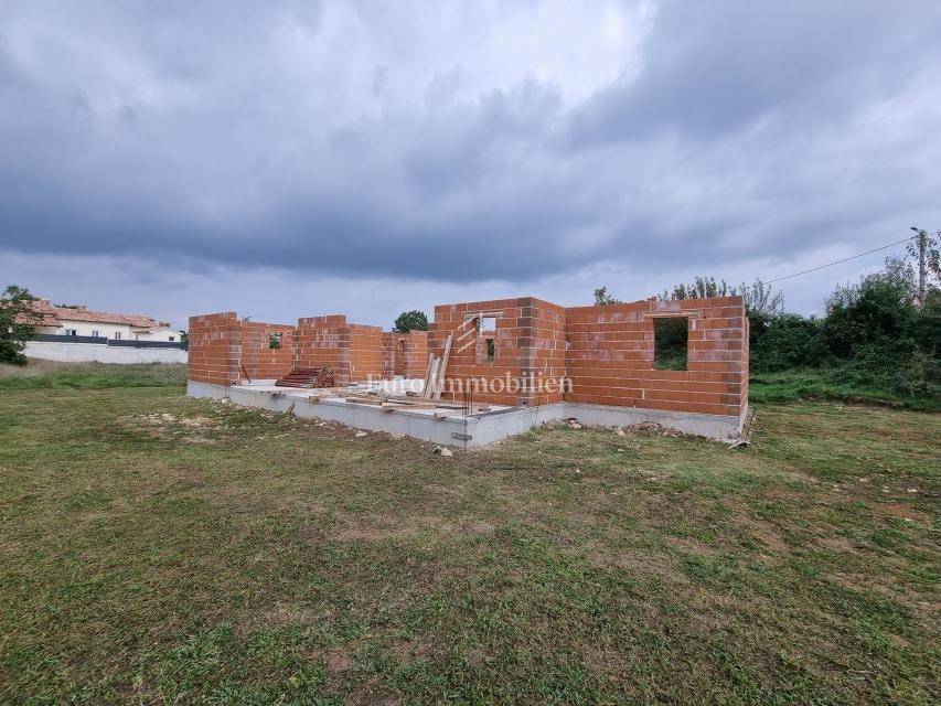 The construction of a modern one-story house on a plot of 1,400 m² in an extremely beautiful location has begun. It is located in a quiet, small village 5 km from Labin.