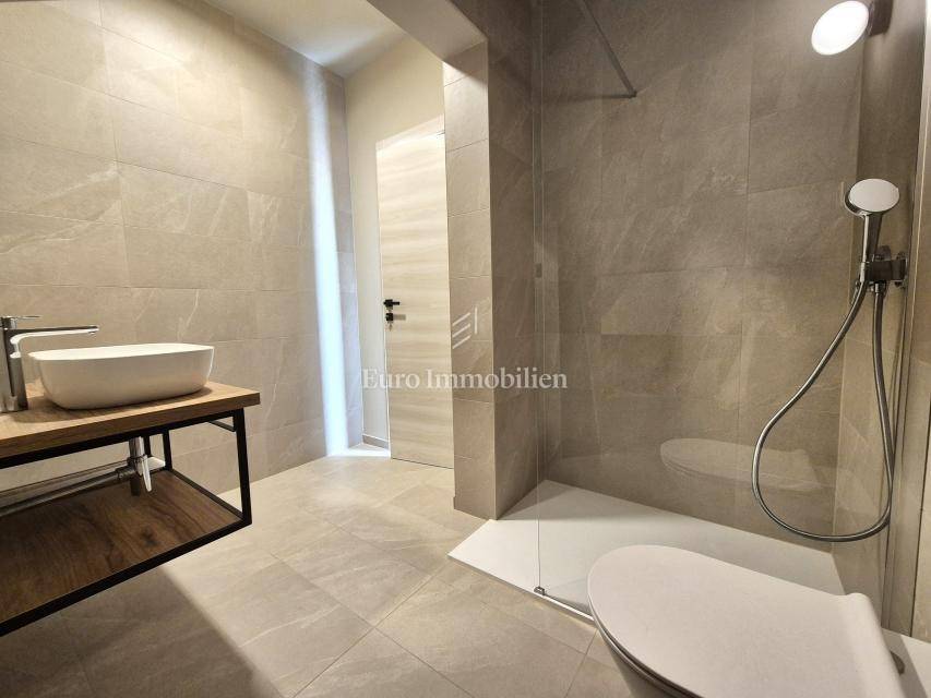 A new building in Omišalj is for sale with a usable floor area of ​​49.83 m2 with its own garden. The apartment is located on the ground floor and consists of an open concept kitchen with dining and living room, two bedrooms and a bathroom. The apartment has a beautifully decorated garden of 54 m2, a parking space of 13 m2 and an entrance hall of 2.45 m2. Next to the parking space there is a preparation for an electric vehicle charger. The apartment is equipped with security doors, quality ceramics and sanitary ware, PVC joinery with ALU roller shutters, underfloor heating in all rooms via a central Vaillant boiler, and air conditioning in all rooms with Viessmann air conditioners.