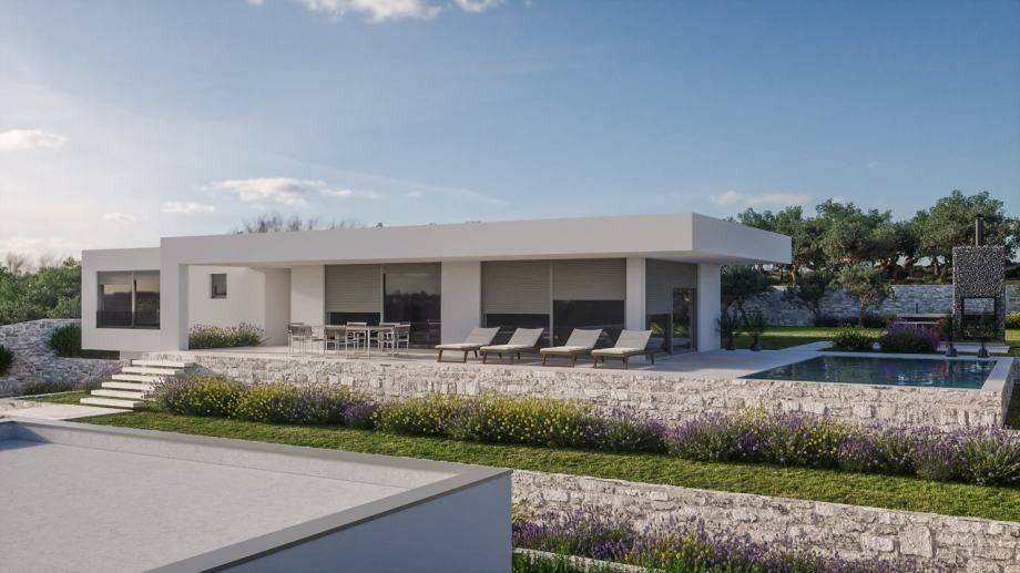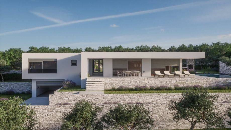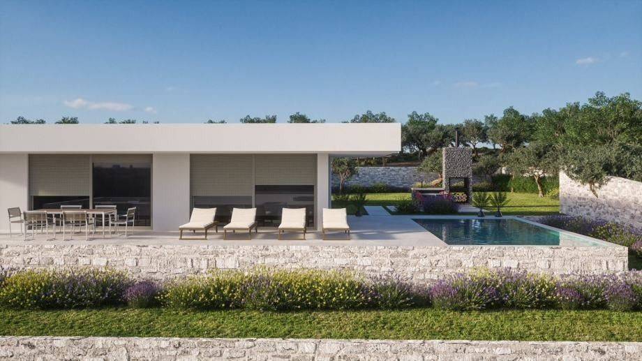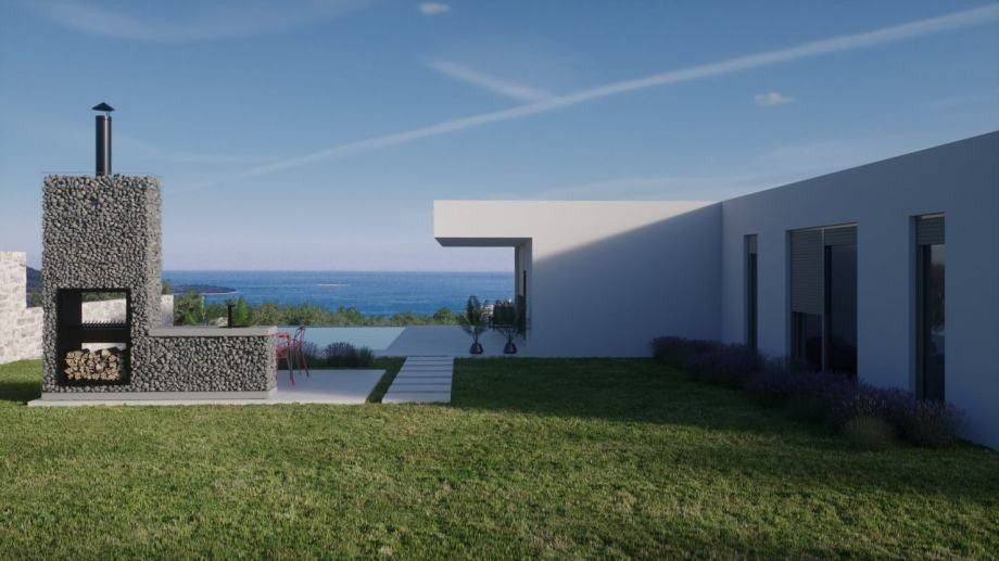 It is located in a complex with seven other villas with a pool. During the design, attention was paid to every detail, so that each villa has a view of the sea, a large garden, which provides privacy for each villa, and top quality materials will be used during construction.