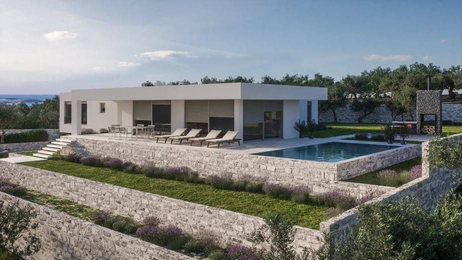 Villa for sale with a beautiful view of the open sea and Primošten.