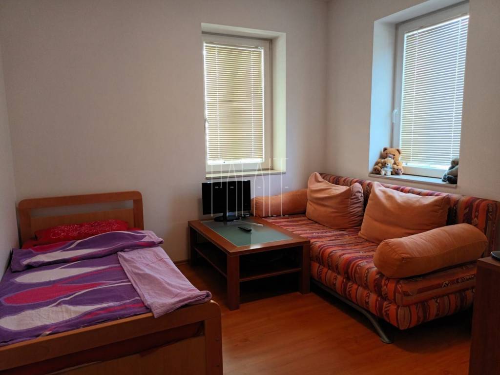 The apartment is located in a residential building on the second floor and has a designated parking space (14m2) and a separate garage (14m2).