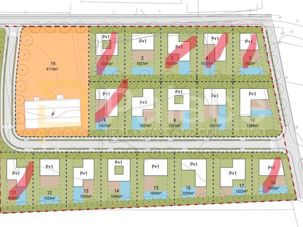 - plot 16 in the third row from the road, area of 1,059 m2, for sale at a price of €44,400