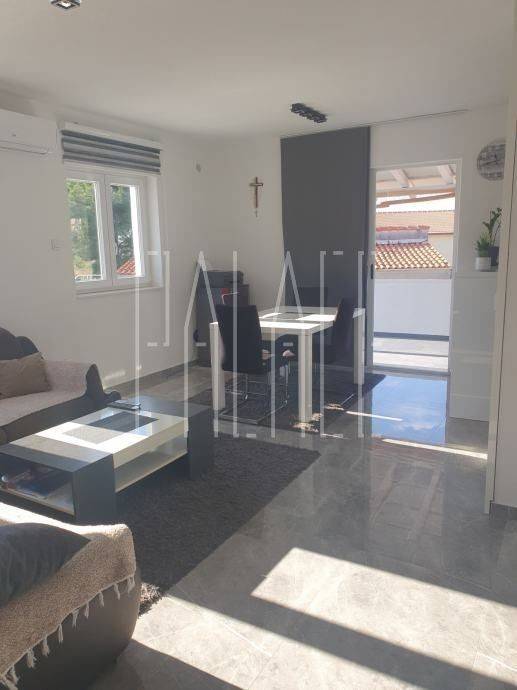 An apartment for sale on the ground floor of a house with a total area of 65 m2 with two large sun terraces and two separate apartments, each with an area of 45 m2. The apartments are located on the floor below the apartment.