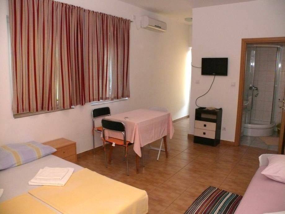 In the beautiful Novalja, in a quiet neighborhood, there is a 54m2 apartment for sale, the apartment is split into one apartment, but it consists of two studio apartments. Each room has a bed, kitchen, bathroom and balcony. The rooms are separated by a door and each has a separate entrance.