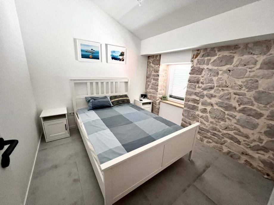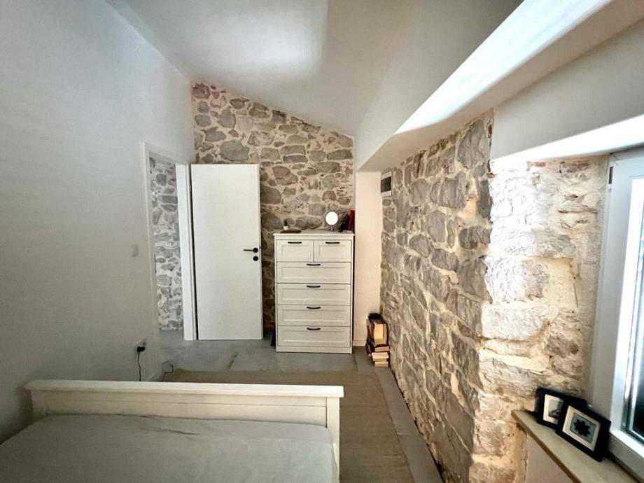 For sale is a newly renovated stone house in a Dalmatian style. The house has an area of ​​125 m2, consists of ground floor, first floor and second floor. On the ground floor there is a spacious kitchen with a dining room leading to the terrace, a bathroom and a storage room. On the first floor there are two bedrooms, a living room with access to the terrace, a bathroom. In the living room there are semicircular stairs that lead to the second floor where there are two additional bedrooms. There are several heating options in the house, underfloor heating, wood stove or via air conditioning. It is sold fully equipped.