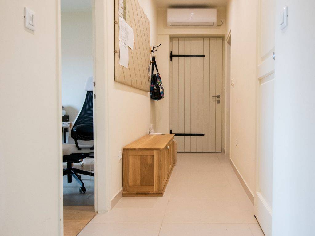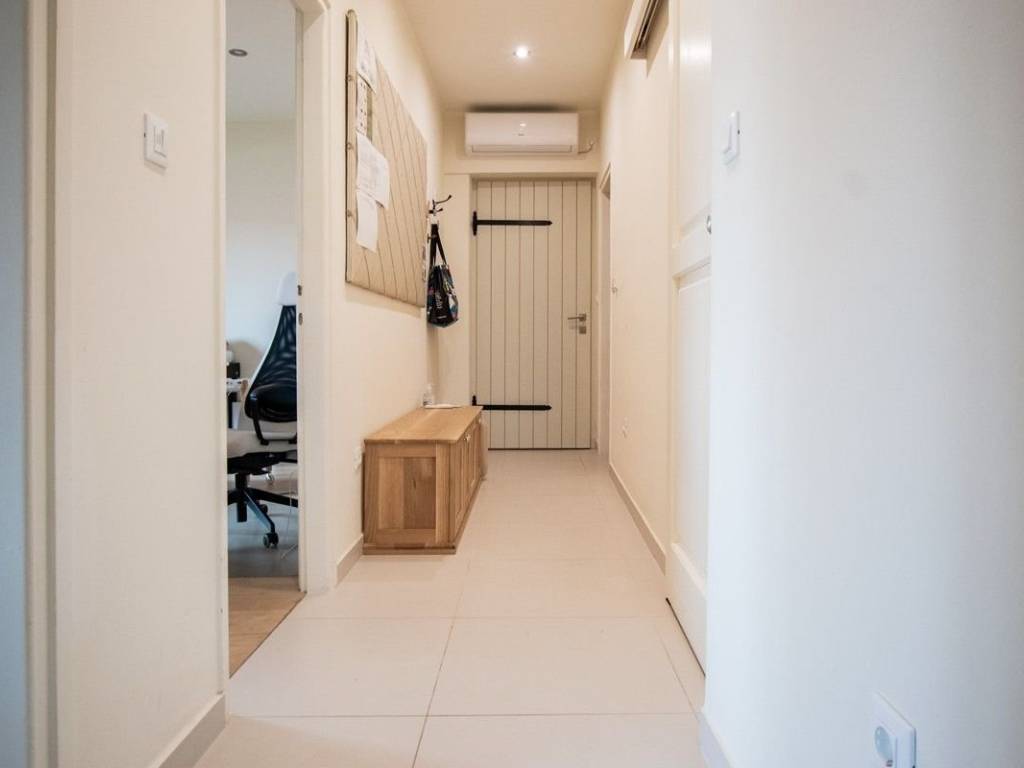 The apartment consists of a kitchen with dining room and living room, overlooking the garden, two bedrooms, one bedroom equipped with a TV and an indoor sauna, and a study room, equipped and ideal for all kinds of physiotherapeutic, aesthetic and medical services. Both rooms overlook the landscaped garden, while the bathroom and toilet are decorated in modery and warm wooden tones.