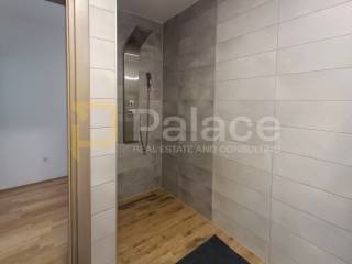 The whole apartment has a three-layer parquet, and the windows are made of six-chamber joinery with three-layer glass and electric shutters. The interior joinery has soundproofing, and the bathroom has underfloor heating.