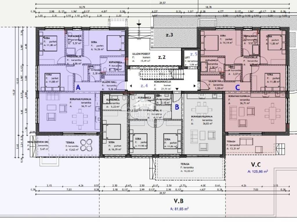 Rovinj - a beautiful apartment in a new building only 150m from the sea Apartment B is located on the ground floor of a residential building with an elevator, which consists of a total of 6 residential units. It consists of an entrance hall, a storage room, an open-plan living room with a kitchen and dining room, and an entrance hall with three bedrooms and two bathrooms. The apartment also includes two parking spaces in the garage and a storage room in the basement. The apartment also has a spacious garden of approx. 82 m2, the exact dimensions of which will be determined according to the floor plan. Additional description: - Climate - Underfloor heating with city gas - Ceramic floors - parquet - Burglar-proof front door - Complete interior walls inside apartments Knauf system - Aluminum carpentry with electric blinds and mosquito nets - Video intercom - Facade - stone wool 10 cm - Glass balcony railings - Parking for two cars in the garage - Elevator from the garage to the first floor Completion of the works is expected in December 2023. Energy class: A+ For all questions and a tour, feel free to contact us at +38595 9003151 Platinum Nekretnine Istra