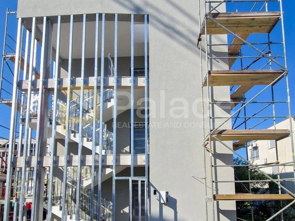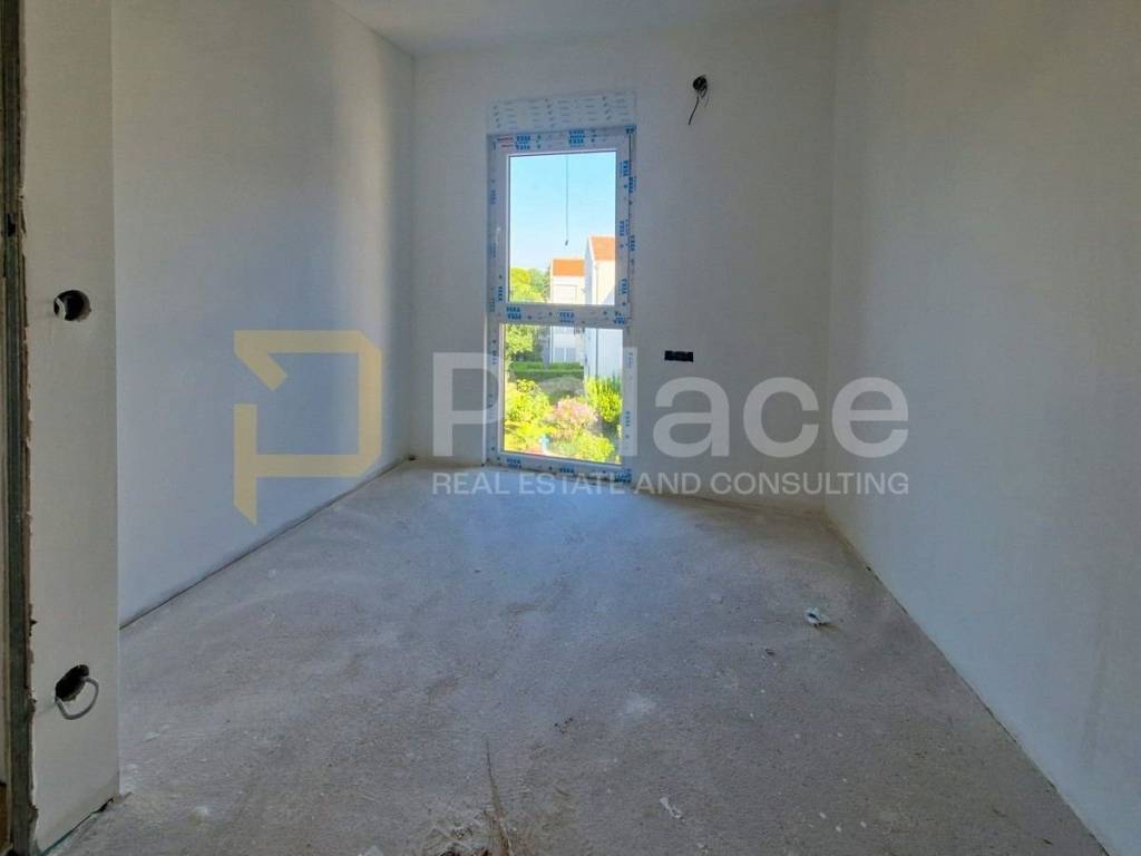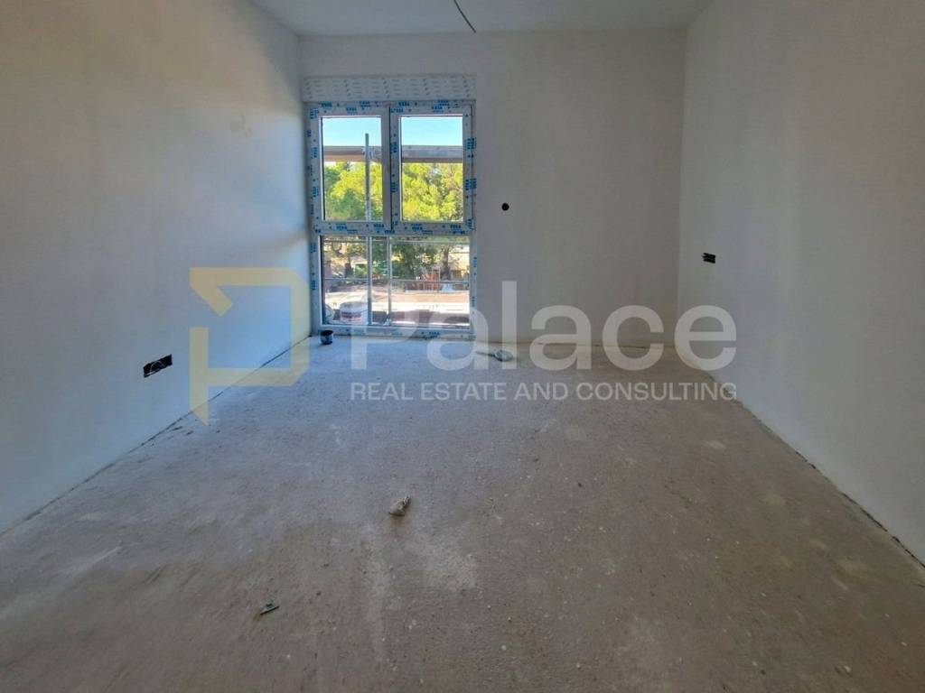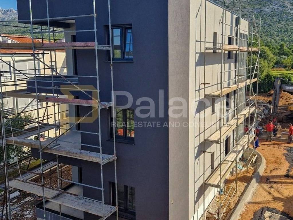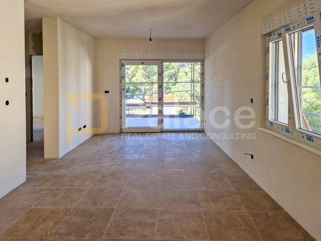 A newly built apartment is for sale in the attractive residential area of Starigrad, Paklenica. The apartment consists of a spacious living room with a kitchen and dining area, a bathroom, a bedroom, a terrace, and a parking space. Each apartment has a separate entrance and a terrace facing the sea. The building is located in a beautiful small pine forest that separates it from the beach.