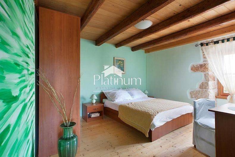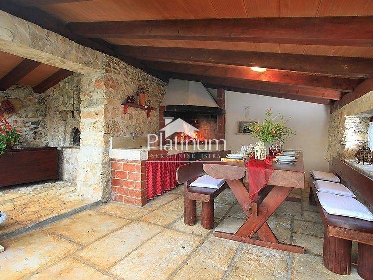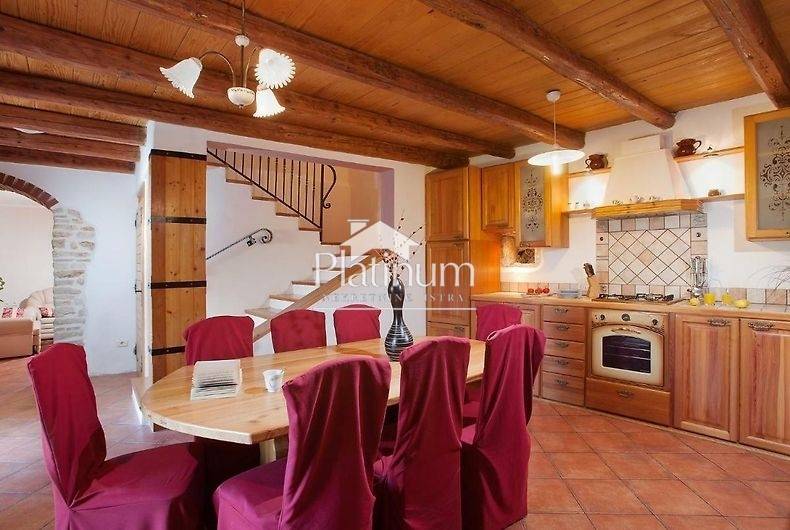 This beautiful rustic house with a swimming pool, 170 m2 with a large garden, is for sale in the vicinity of Marčana. The house consists of a ground floor where there is a bathroom, a living room with a fireplace, a storage room and a large spacious kitchen that leads out to a large spacious garden with a summer kitchen and a swimming pool. There are three bedrooms with their bathrooms on the first floor and a large spacious room in the attic. The summer kitchen is fully equipped for pleasant gatherings. Around the pool is a sunbathing area surrounded by olive trees. Private parking for five cars. Pure ownership. If you like rustic autochthonous houses for a quiet life without the hustle and bustle of the city, this is an opportunity for you or money well invested to return your investment by renting. contact 00385951987708
