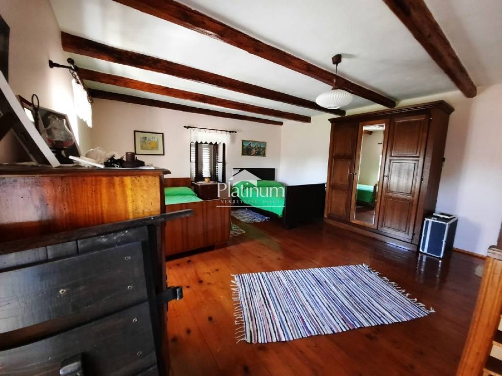 In Kavran, a beautiful small town, this rustic house with a large landscaped garden, a separate apartment, a garage, a summer kitchen, a tavern and a storage room is for sale. In the older part of the house on the ground floor there is a room with a fireplace, and on the first floor there is a spacious bedroom with two double beds. In the newer part of the house on the ground floor there is a living room with a kitchen and dining room, a bathroom and one bedroom. The 38m2 garage is connected to the house, and there is a storage room in between. Next to the house is an apartment of 60m2 with a separate entrance from the yard, consisting of a living room, kitchen, bathroom, bedroom and terrace. Below the apartment is a 20m2 basement that serves as a tavern. The garden is very nicely landscaped and maintained, and it also has its own irrigation system from a cistern with a water pump. Olive trees and Mediterranean vegetation provide additional atmosphere. The property also has a summer kitchen with a bread oven and a storage room for tools. Access to the house is possible from two sides. Heating is possible via a wood stove and three air conditioners. It is sold furnished with all furniture and equipment. Own septic tank. Clean ownership, no encumbrances, all objects drawn with proper documentation. Possibility of purchasing through credit. If you want a peaceful life in the countryside with the possibility of doing tourism, this is your opportunity. contact 00385951987708