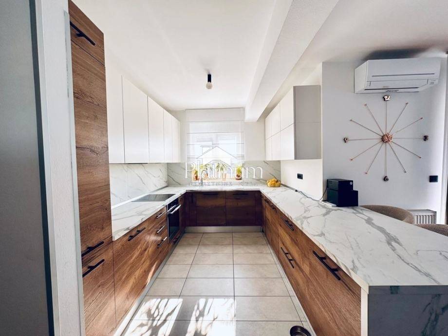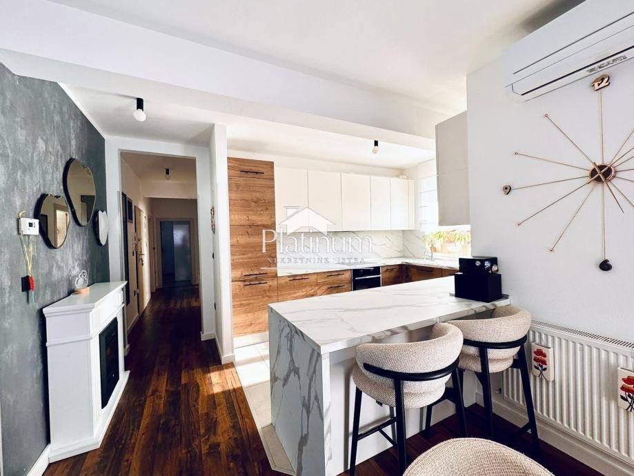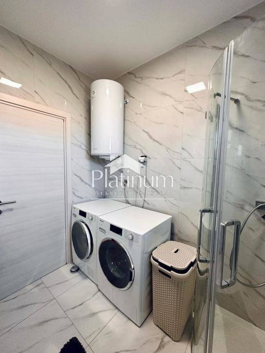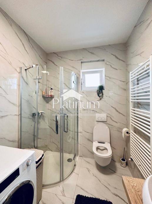 A spacious and modernly furnished apartment of 104 m2 is for sale, located on the first floor. The apartment consists of an entrance and a spacious hallway that leads to the rest of the apartment of three beautiful bedrooms with custom-made furniture. On our left side there are two spacious, modern-looking and fully equipped bathrooms that are between the living and sleeping areas of the apartment. Our kitchen is open-plan with exceptionally beautiful furniture and a good layout with plenty of storage space. The living room is connected to the open-concept kitchen and is illuminated with access to a balcony from which you can see the greenery and a quiet neighborhood. The living room is spacious and equipped with modern minimalist-looking furniture and quality laminate flooring. All window openings are beautiful and larger with quality PVC joinery. The entire apartment is sold furnished and decorated as seen in the pictures. Along with the apartment, we have two secured parking spaces in front of the building. The property is located in an exceptionally interesting and good location. Close to the main road that connects the exit from the city and yet you are in a quiet location in an isolated street with a view of the greenery and the settlement. Heating is provided by air conditioning and a central heating system with pellet radiators in all rooms, which ensures a comfortable temperature throughout the year. Ideal for a family or couple looking for a spacious and functional home near all important amenities. Due to its attractive location and proximity to all supporting amenities, the property offers a very interesting investment to the future buyer. The property has been furnished with love and it is clear that every detail has been taken care of. The apartment is ideal for living or for engaging in tourism with a long-term return on investment. Info on 00385 91 924 9486