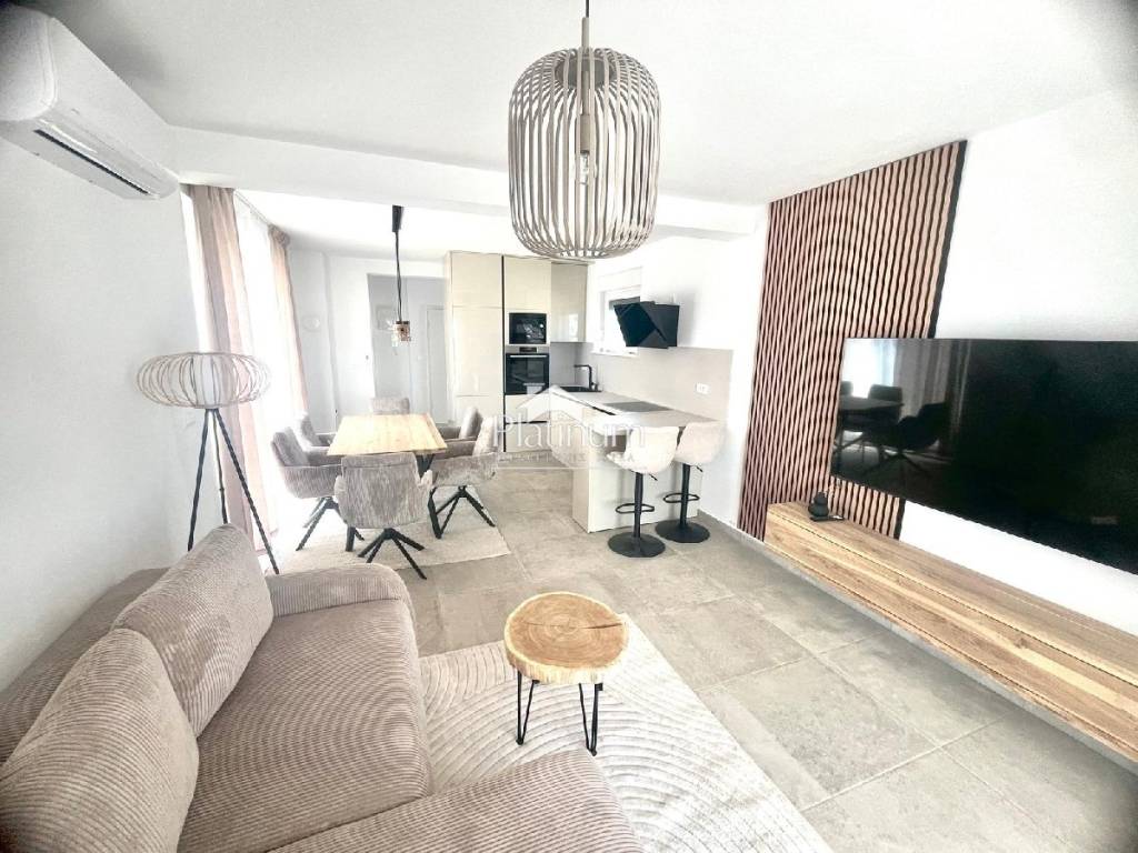 FOR SALE, HOUSE WITH POOL, VODNJAN, 125 m2 Bedrooms 3 Price 480,000 (VAT included) Area 125 m2 Total number of rooms:4 Bathrooms:3 Total floors:1 Parking spaces:3 Year of construction:2024 FOR SALE, HOUSE WITH POOL, VODNJAN, 125 m2 A beautiful modern two-story house is for sale, with an area of 125 m2, spread over two floors. On the ground floor there is a living room with a kitchen and dining room, a bedroom, a bathroom and a separate guest toilet, while on the first floor there are two bedrooms, two bathrooms and a laundry room. The room on the first floor has access to a covered terrace of 15 m2 with a beautiful sea view. Air conditioning units have been installed in the living room and bedrooms, and electric underfloor heating in the bathrooms. The ground floor provides access to a 32 m2 swimming pool with a prepared pool heating system. The house is situated on a 450m2 plot, and there is parking for three cars in front of the house. Complete exterior joinery is equipped with an electric roller shutter system and mosquito nets. It is located in an excellent location, close to all essential amenities, and 5 km from the first beach. The house is in the final phase of construction, and is being sold turnkey. Ownership is in order. The property is subject to VAT. Price including VAT: 480,000 Euros