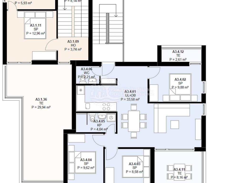 Kaštel Novi / Three-Bedroom Apartment with Sea View A3-4
