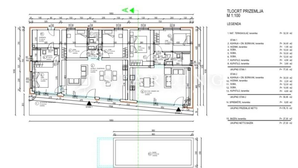 This beautiful property spans 176 m² of living space, divided into two separate residential units. It is situated on a plot of land with a total area of 792 m².