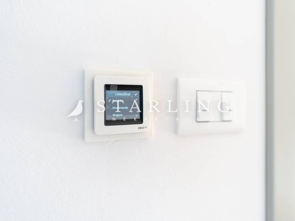 Each room is equipped with its own air conditioning unit, and the entire apartment features underfloor heating with individual thermostats, ensuring year-round comfort.
