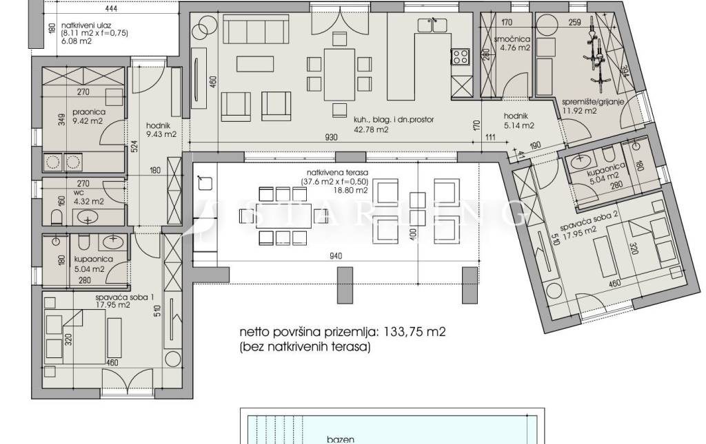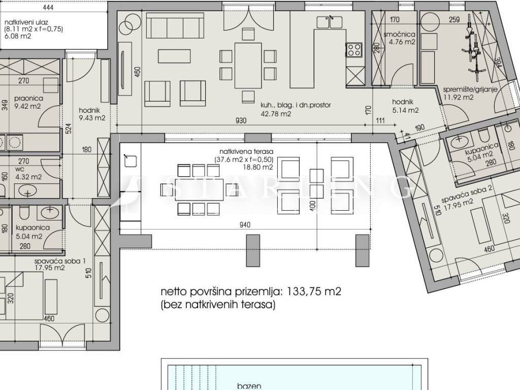 Planned house: 129 m² of interior living space + 38 m² covered terrace + 8 m² covered entrance