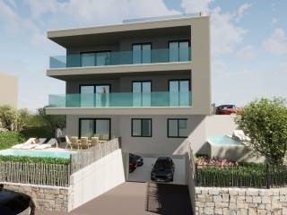 This luxury building of modern design, which provides the maximum comfort of exclusive housing, extends over four floors, the basement, where the garage space is located, the ground floor and two floors. The building has a total of 3 residential units, i.e. three spacious luxury three-room apartments, two of which have their own pool.