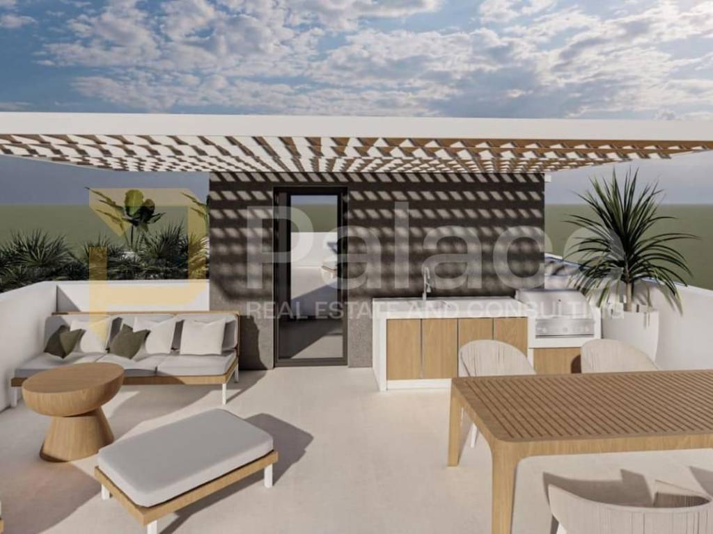 The apartment consists of an entrance hall, a bedroom, a bathroom, a kitchen, and a living room. The apartment will be well equipped, with high-quality carpentry, air conditioning, anti-burglary and fireproof entrance doors, modern bathroom fixtures, and more. The apartment comes with one parking space and access to a rooftop terrace of 44m2, as well as the right to use a common pool. Completion of construction is expected by the end of 2025.