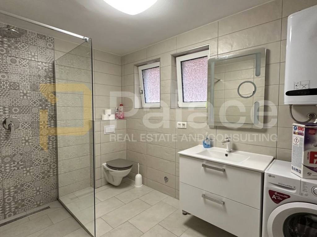 The ground floor of the house, with a surface area of 70 m2, consists of a bright and spacious living room with dining area and a modern equipped kitchen, two bedrooms, and a bathroom. The living room leads to a covered terrace of 21 m2, which is an ideal place for relaxation in the shade or gathering with family and friends.