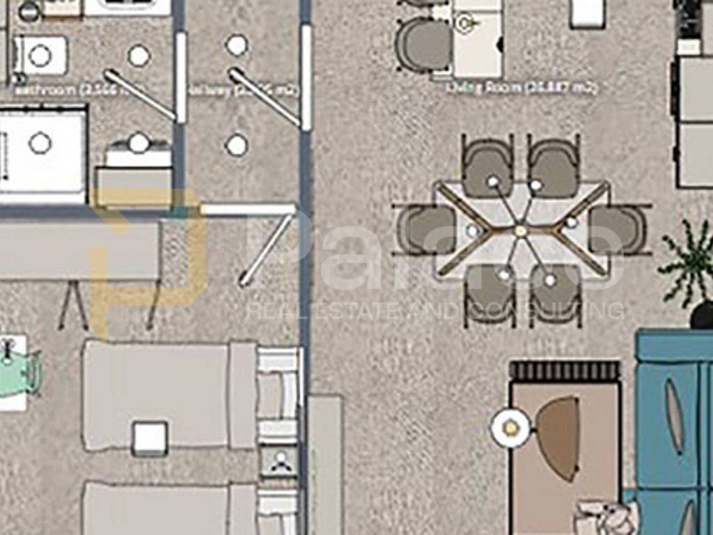 The building is constructed according to the highest energy efficiency standards (A+), with 10 cm thermal insulation, top-quality PVC joinery with triple Low-E glazing, electric aluminum shutters and insect screens. The apartment is equipped with anti-burglary and fireproof entrance doors, while each space has inverter multi-split air conditioning units (Gree) with Wi-Fi control.