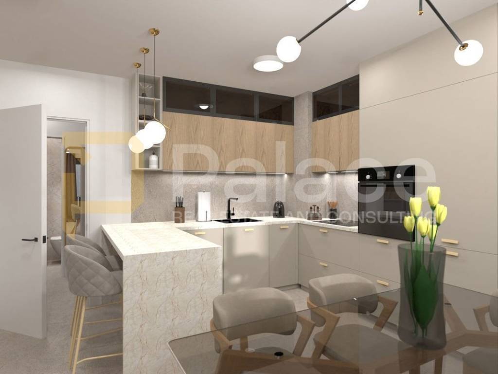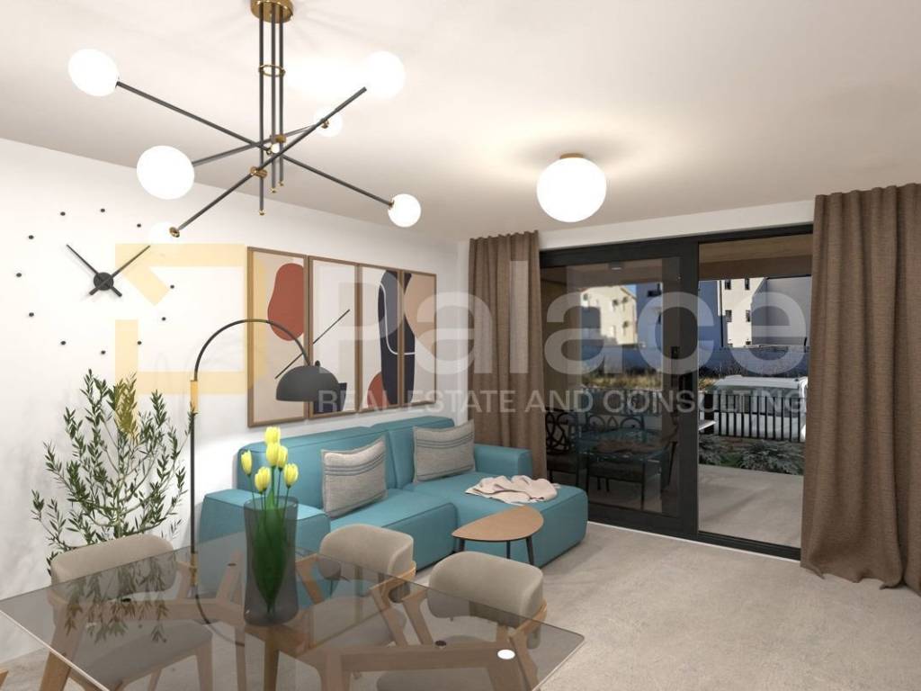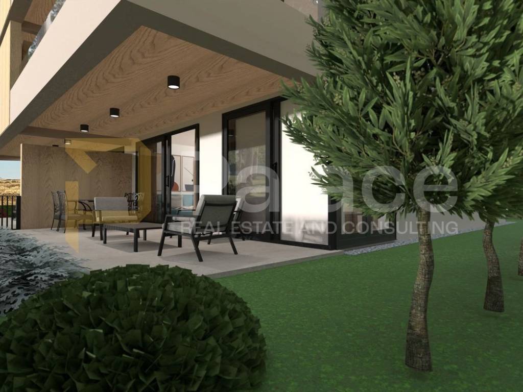 Attractive two-bedroom apartment on the ground floor of a modern residential building with a total of six apartments is for sale, located in a quiet new neighborhood, just 350 meters away from the sea and the first beach.