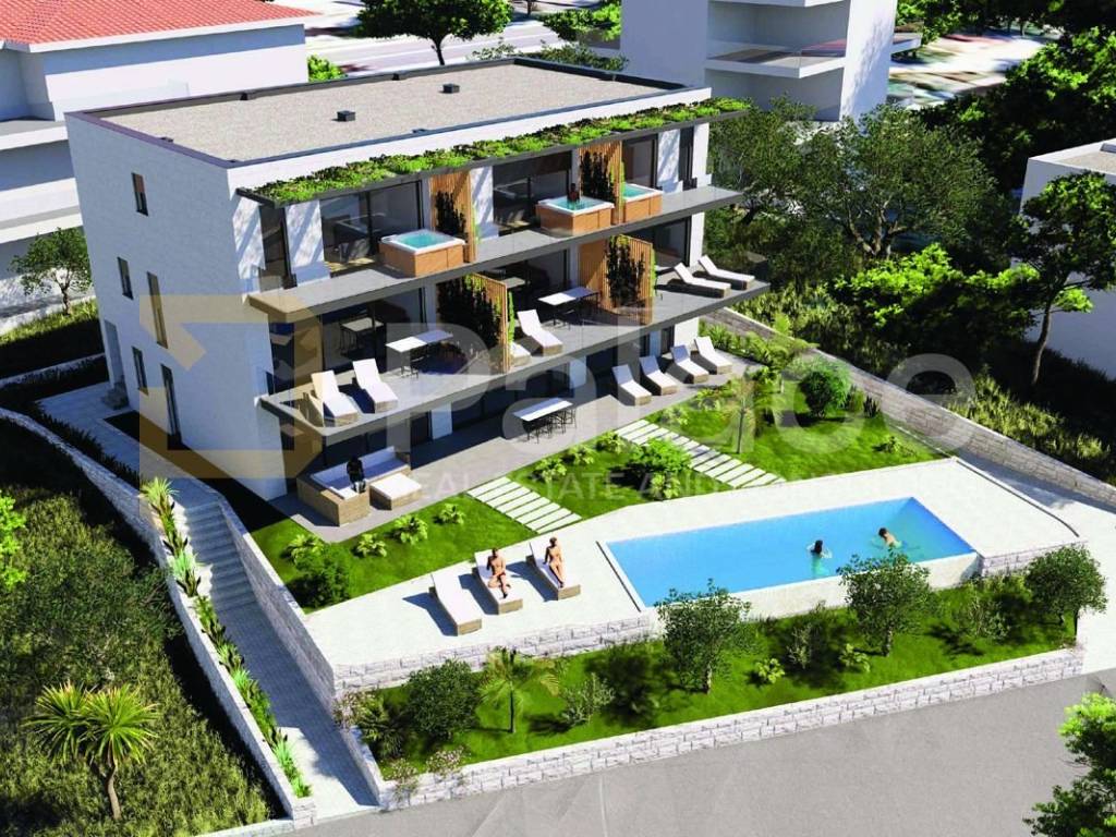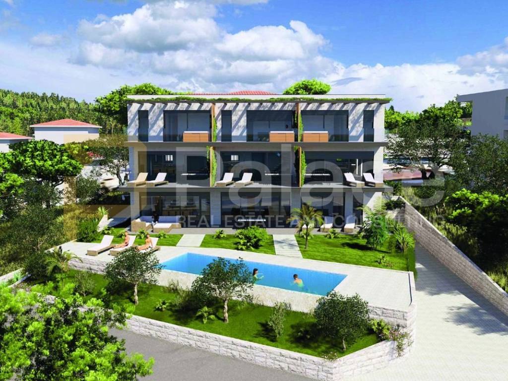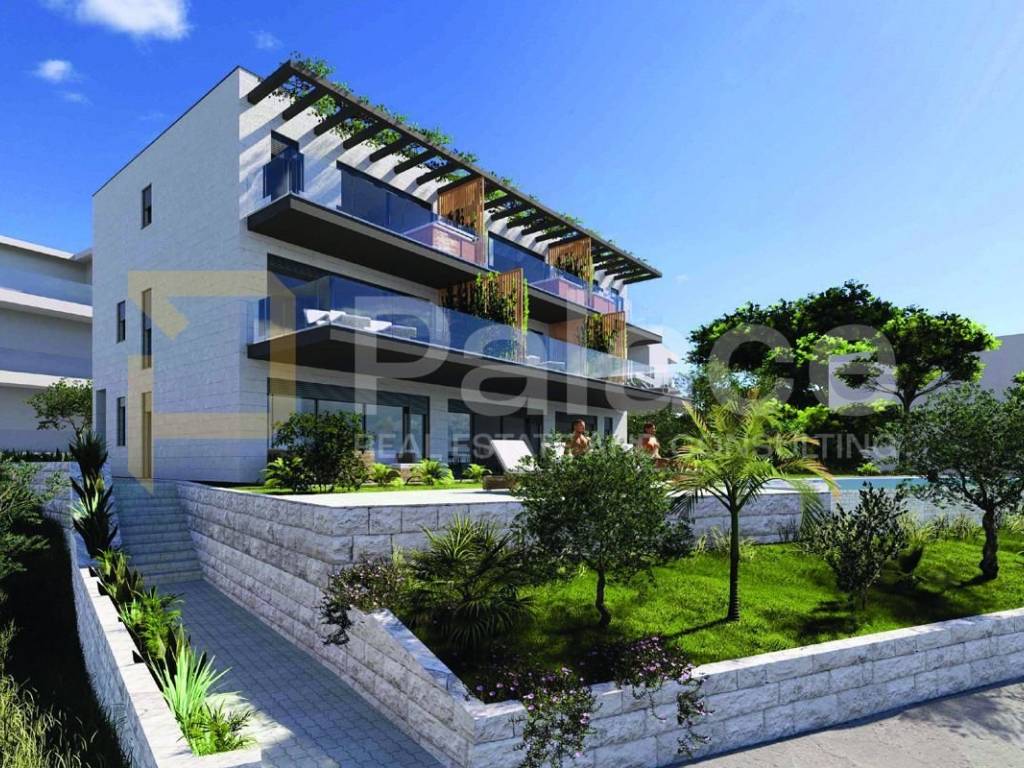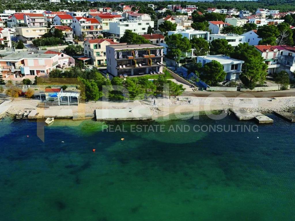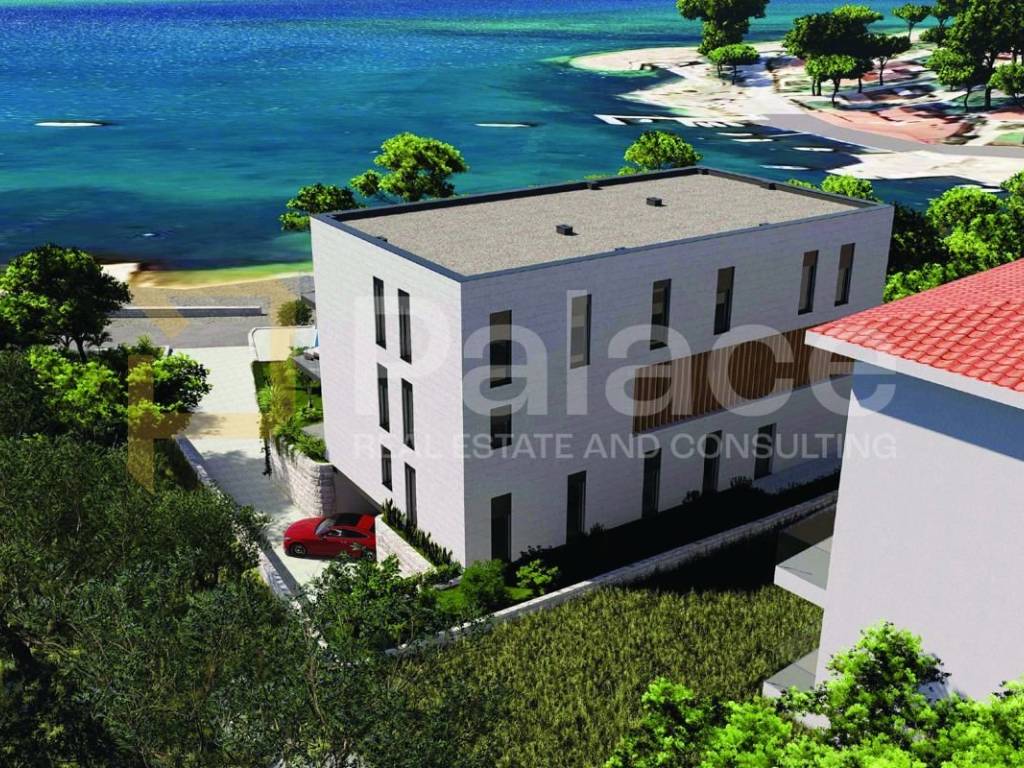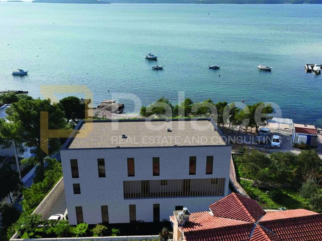 EXCLUSIVE, FIRST ROW TO THE SEA! We are mediating the sale of a unique, modern and luxurious new construction project in Brodarica, near the town of Šibenik! The entire project was designed as a highly luxurious urban unit that guarantees the highest quality of construction with the use of the highest quality materials and modern and luxurious equipment (superior thermal, hydro and sound insulation, installation of burglar-proof doors, aluminum carpentry with electric shutter lifters (walls - shuco design line), glass railings on the balconies, air conditioning in every room, satellite TV and internet connection, high-quality ceramics in the bathrooms, which will be fully equipped, and underfloor heating in all rooms. Brodarica is a small tourist town only 5 km south of Šibenik. Stretching along the sea, it faces nine islands and islets that make up one beautiful lagoon. Brodarica is a quiet and pleasant village of villas and private houses suitable for family holidays and swimming on picturesque stone and sandy beaches.A modern two-story apartment with a total area of 139,34 m² with a unique view of the sea and the Šibenik archipelago is for sale in a wonderful location only 20 meters from the sea. The apartment is located on the first and second floor and consists of an entrance hall, a kitchen with a dining room and a living room, a toilet and a wardrobe, and two uncovered balconies with a view of the sea. The second floor of the apartment, which is reached by an internal staircase, consists of a hallway, three bedrooms, one of which is a master bedroom with a bathroom and dressing room, another bathroom and a balcony. All rooms are equipped with Mitsubishi air conditioners (split system) and floor heating (Magnum).The apartment has a pergola that can be operated by remote control, a shared pool and one outdoor parking space. We are available for more information. Agency PalaceAgent: SanjaContact: 00385 91 111 8686