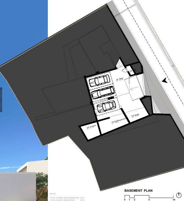 Villa "B" is the second in line and is located on a plot of land totaling 804 m2. It consists of a basement, which is also a garage, ground floor, and a flat roof.