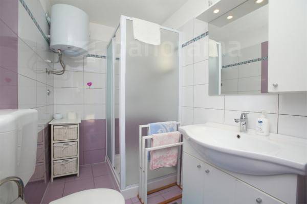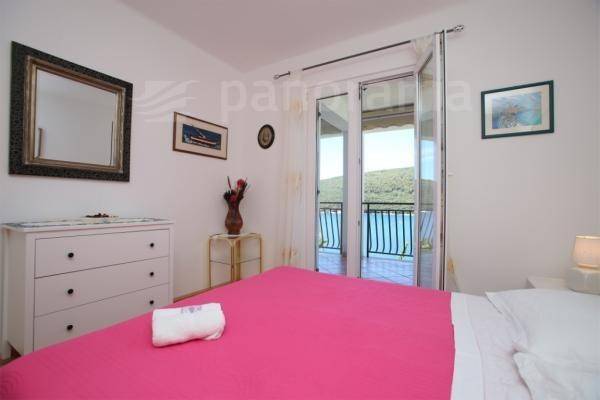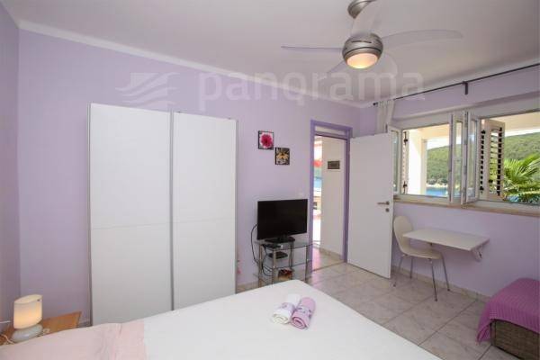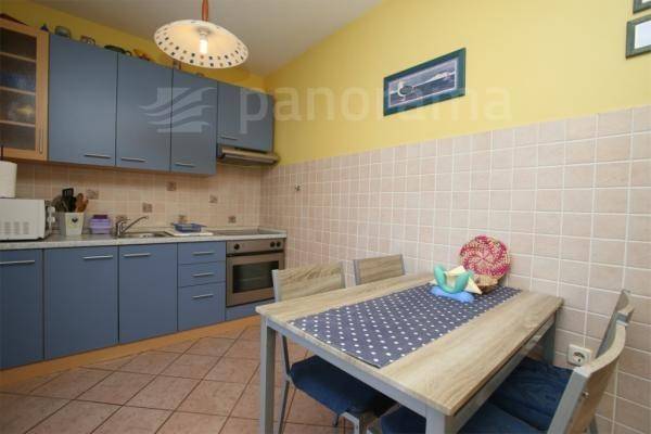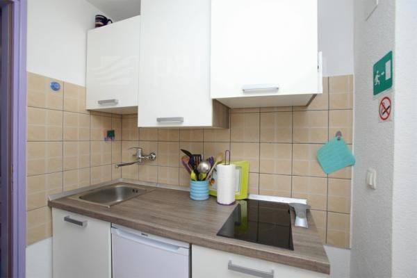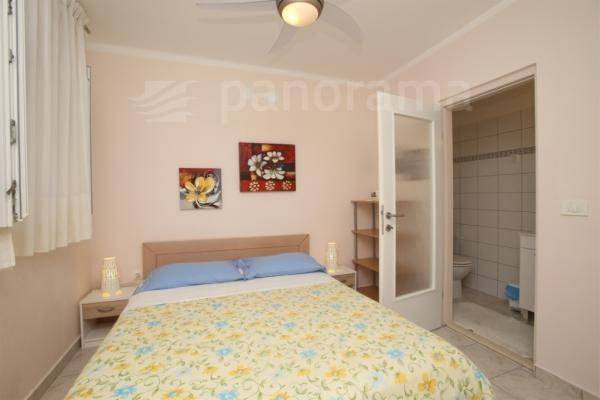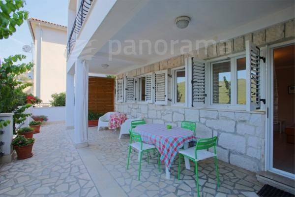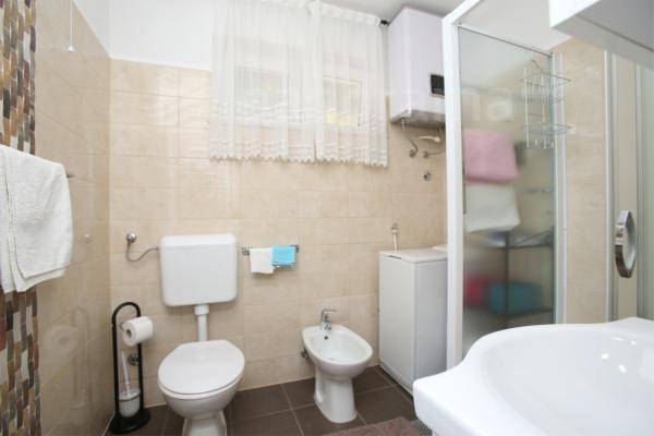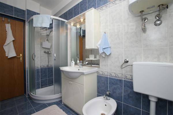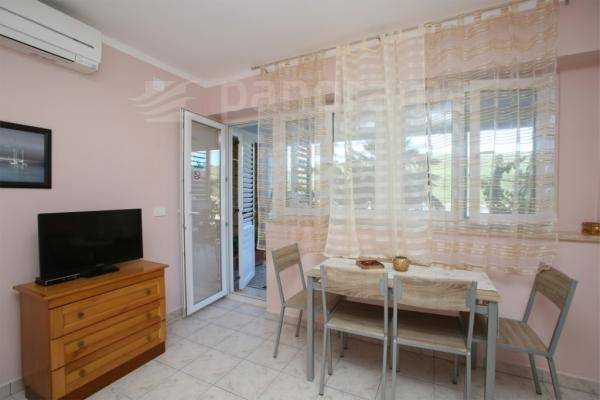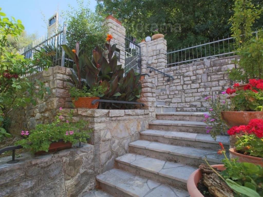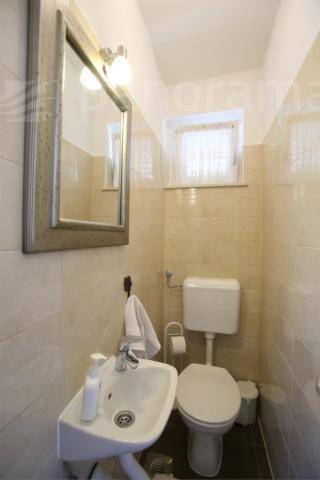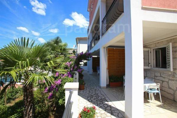 The house is in the center and is only 50 meters from the sea. It has an area of 260 m2 and spreads over three floors. In the basement is a spacious covered terrace (25.60 m2) and open area, apartment, studio apartment, laundry and auxiliary facility (mini kitchen, toilet, shower). On the ground floor there is a two bedroom apartment of 90 m2 which consists of two bedrooms, bathroom, toilet, kitchen, living room and a large covered terrace, and there is another one bedroom apartment. At the top there are two more one-bedroom apartments, each with kitchen and living room and one bedroom, bathroom and terrace. Each apartment offers a beautiful, unobstructed sea view. All apartments are furnished and equipped, each apartment has air conditioning. The garden has an area of 617 m2, is decorated with Mediterranean plants and maintained. There is a parking lot next to the house.