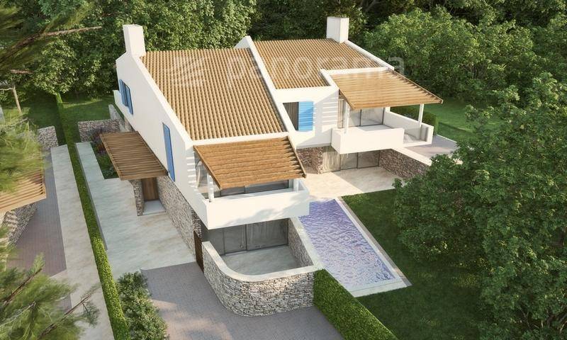 The area of the villa-like duplex house is 400 m2. The house is for sale in the unfinished phase, and the price includes a house "under the roof", tinsmith, exterior carpentry, partition walls, small walls in the environment, making a pool shell and septic tank.