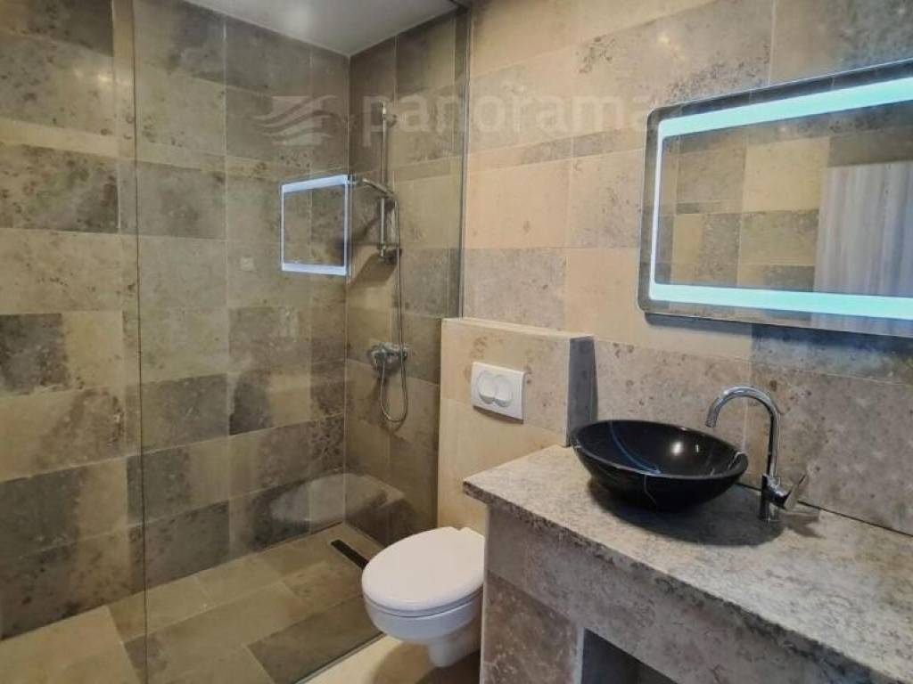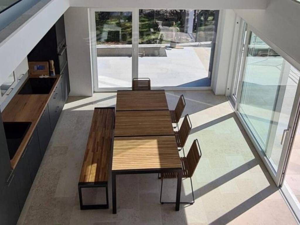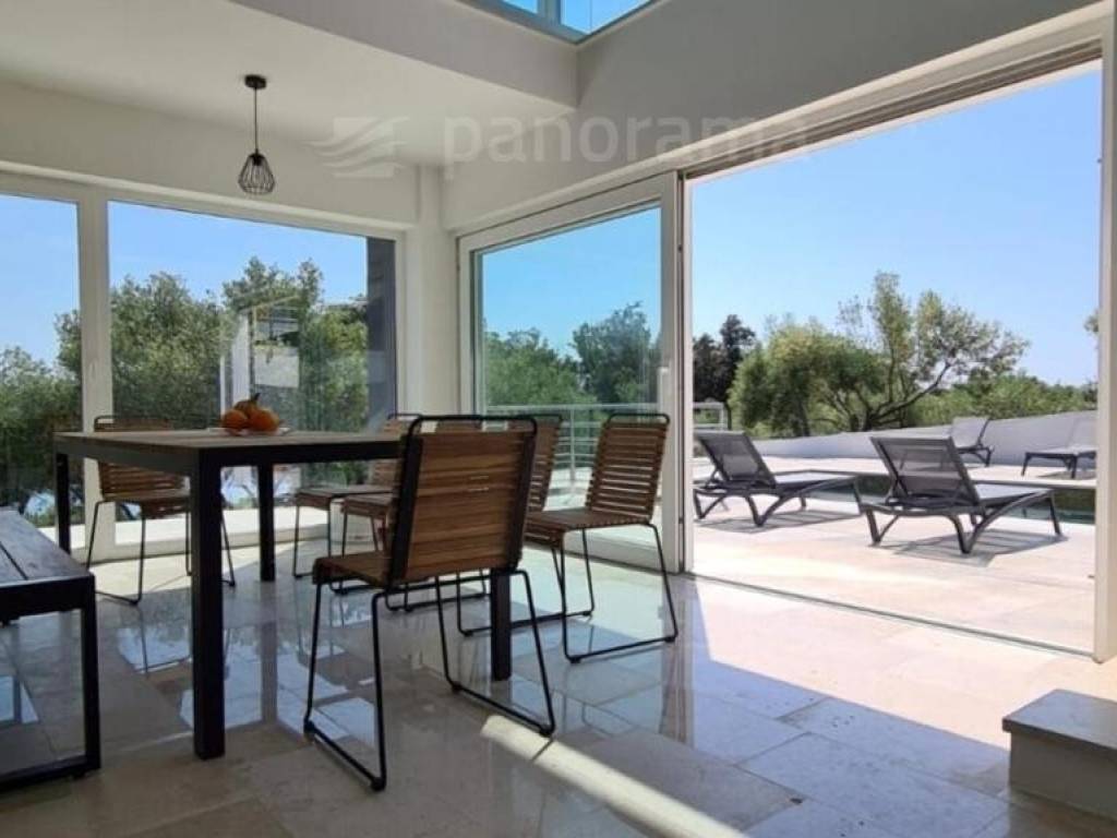 The property has a modern design, minimalistic decoration to emphasize the open space with large glass walls and a beautiful view of the sea from every corner of the villa. The house is sold furnished, all rooms are equipped with air conditioners, and the living room has a closed fireplace that provides a special atmosphere during the winter months.