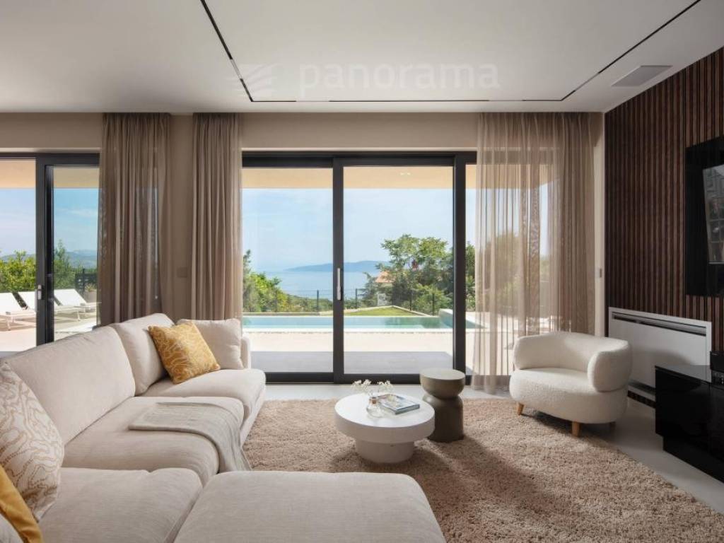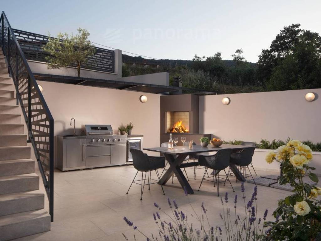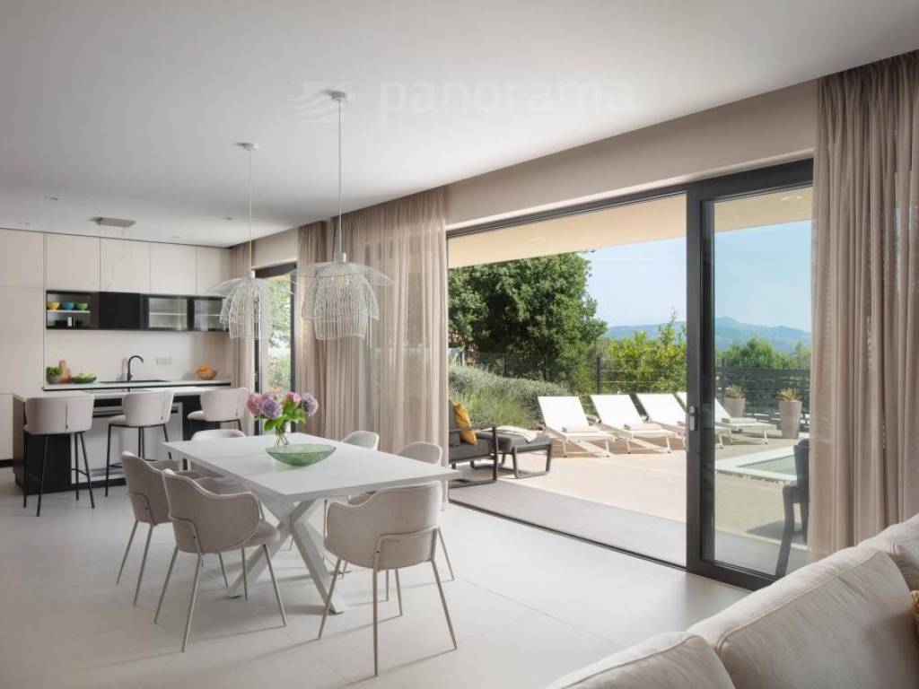 The villa has an area of 200 m2 and is spread over two floors. On the ground floor there is an open space concept kitchen, dining room and living room, as well as a storage room, laundry room, wardrobe and toilet. An internal cantilever staircase leads to the first floor where there are 3 bedrooms, each with its own bathroom and access to the terrace, which offers a unique, panoramic view of Kvarner, the islands of Cres, Lošinj and the city of Rijeka.