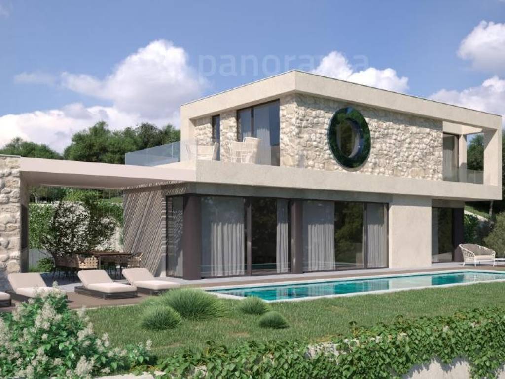 This exceptional villa with a pool is being built in a small picturesque town in eastern Istria. In addition to its special design and quality, you will be delighted by the unobstructed view of the sea from every room.