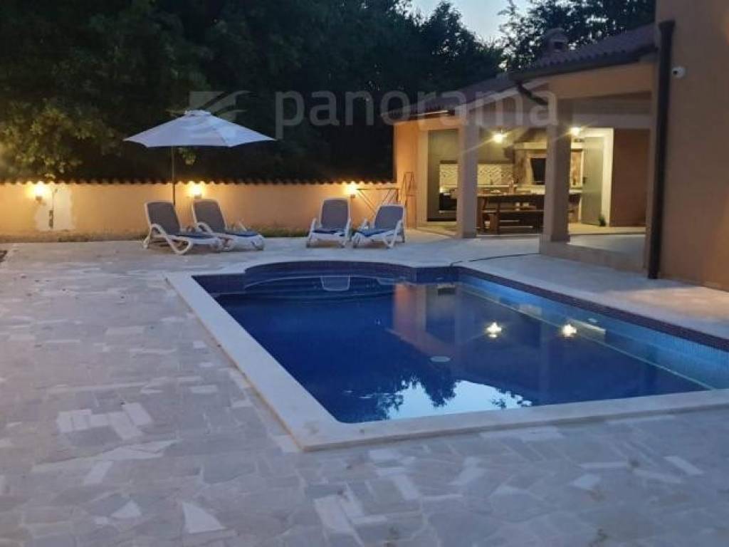 The house has an area of 151 m2, and extends through the ground floor and first floor. On the ground floor there is a fully equipped kitchen with a dining room and a living room with access to an open covered terrace and swimming pool. On the ground floor there is also one bedroom, a bathroom and another large room that can be used as a gym or a storage room or a playroom, all according to the wishes of the future owner. An internal staircase leads to the first floor where there are 3 bedrooms and a bathroom. One bedroom has access to a terrace with a beautiful view of the surrounding greenery. The house is tastefully decorated with custom-made furniture, heating and cooling is via air conditioning (7 air conditioners with inverters). The plot on which the house is located has a total area of 846 m2 and is adorned with a spacious 7x4 swimming pool with a Roman entrance and a sunbathing area. The house also has a covered, fully equipped outdoor kitchen (oven, stove, hood, dishwasher) with a fireplace and toilet, as well as an additional outdoor room that serves as the pool's engine room and storage space.