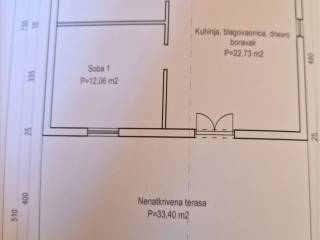 The house is slightly elevated, the staircase leads to an uncovered terrace of 33.40 m2, and the interior consists of a kitchen with a dining room and a living room with access to a terrace of 22.73 m2, one bedroom that also opens onto a terrace of 12.06 m2 , another bedroom of the same square footage and a bathroom of 3.80 m2.