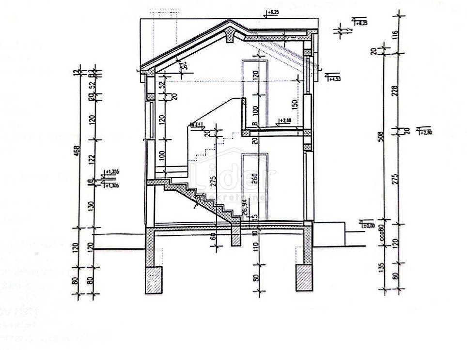 The house consists of a ground floor and a high attic. On the ground floor there is a living room, kitchen, bathroom, storage room, hallway, staircase leading up and a 12 m2 large terrace with a pergola, and on the high attic there are two bedrooms, a wardrobe and a hallway.