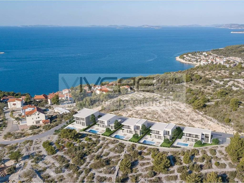 Primošten Hills – Villa 4 Property description Enjoy the sunny side of life: Our five luxurious villas in Primošten make it possible! On two floors, the villas of Primošten Hills impress with their modern architecture, high-quality furnishings and exclusive location with sea views. Rooms flooded with light, bright colors and first-class materials make the villas a true living and holiday paradise. The villas are equipped with a pool and optionally with a jacuzzi, an air heat pump with underfloor and ceiling heating and cooling as well as room ventilation. On request, the villa can be set up as a Smart Home. Phone and Internet connections are provided on both floors. Not only the modern architecture and the high-quality equipment of the villas is unique, but also their location. This special piece of earth is located directly on the Croatian Adriatic coast. Located on a small hill, all five villas have an exclusive view over the crystal clear sea - including romantic sunsets - and the picturesque old town of Primošten. The project is just 400 meters away from the beautiful beach of Mala Raduca. Location In Primošten you can forget everyday life: Stroll through romantic alleys with pretty boutiques, past old Dalmatian stone houses and blooming flowers and bushes, or along the waterfront. With its unique location, beautiful beaches, enticing destinations such as the national parks Krka and Kornati, as well as hospitality and charm that is second to none, Primošten is one of the most beautiful holiday regions in Croatia. Discover the beauty of the former fishing village with its old town (Raduča) on a peninsula. All around the old town of Primošten, beautiful beaches invite you to sunbathe on hot summer days and the crystal-clear sea to cool off. In the evening hours, restaurants, konobas and taverns with Dalmatian delicacies as well as bars and discotheques invite you to celebrate. Speaking of culinary delights: around 3 km south of Primošten are the vineyards of Bucavac Veliki. The wine-growing region is unique in the entire Adriatic region. Villa 4 The ground floor is dominated by the light-flooded, open living and dining area with adjoining spacious kitchen and separate storage room, in which the building technique is housed and which is also accessible from outside. The impressive effect of the large glass fronts becomes clear in the living area: bright, airy and spacious rooms are created with an unobstructed view of the Mediterranean surroundings and the sea - breathtakingly beautiful! The offer on the ground floor is rounded off by a guest toilet in the entrance area and a separate wing with a spacious bedroom and bathroom en suite as well as a garage with direct access into the estate. The full-height sliding patio doors lead from the living area and the bedroom directly onto the amazing private pool fringed by a large terrace where elegant sunloungers provide comfortable spots from which to savour the magical surroundings. In addition to the garage the property has another outdoor parking space. Four elegant, spacious bedrooms are on the upper floor. All bedrooms have their own first class equipped en-suite bathroom. In addition, two bedrooms have access to a spacious sun terrace of over 26 square meters with a fantastic panoramic view, while another bedroom has a private balcony. Villa 3 has an identical layout. A detailed building specification is available on request. Construction has already started! Completion is expected in spring 2025. The marked purchase price includes the statutory VAT. Alternatively, you have the option of purchasing the property through a Croatian limited liability company founded specifically for the property in question. The net purchase price for acquiring the company is 848.000 €. A separate Ltd. was established for each villa. Purchasing through a company is particularly recommended if you do not want to purchase the property exclusively for your own use, but also want to let it out to tourists.