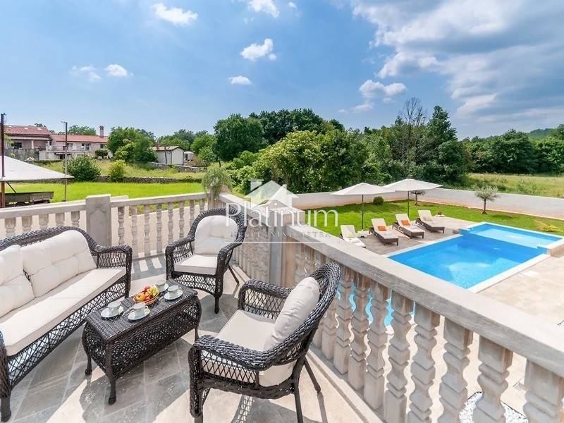 A beautiful detached villa with a swimming pool of 130 m2 is for sale, located in the peaceful and picturesque surroundings of Barban. The villa is fully furnished and equipped and is being sold in this condition. The property is ideal for those looking for the perfect combination of comfort, privacy and nature, whether for family life, vacation or investment. It consists of four bedrooms, each with its own bathroom, ensuring maximum comfort, the spacious living room is connected to the kitchen and dining room. From the living room and kitchen there is direct access to the sun deck by the pool. The large terrace is on a higher level with a view of nature, perfect for relaxing and socializing. The yard is completely fenced and decorated as a lawn with several olive trees, which gives the space an additional charm of a Mediterranean atmosphere. For all additional information, please contact us at +385976668173.